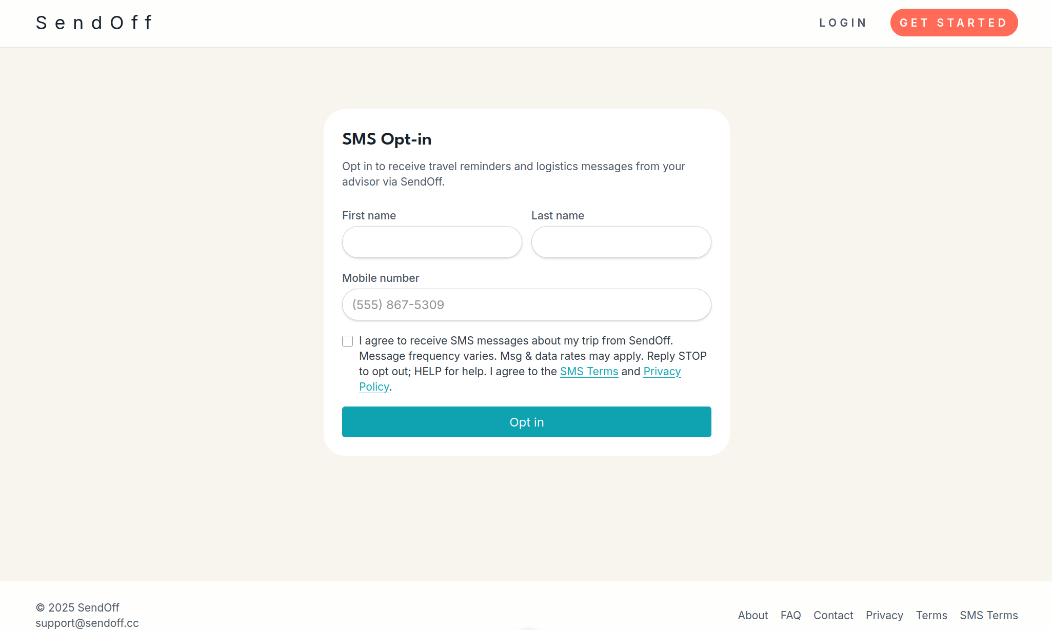 SendOff — SMS Program Overview & Opt-In Evidence